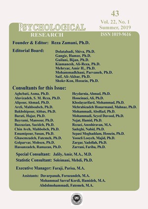 List of Articles Open Access Article Abstract Page Full-Text 1 - Effect of Cognitive Load and Task Duration on Time Perception ALI Shahabifar Seyed Mehdi Hosseinifard Ata-o-llah Movahediniad 20.1001.1.10199616.1398.22.1.1.4 Open Access Article Abstract Page Full-Text 2 - Efficacy of Integrated Model of Self Regulation-Attachment Couple Therapy on Dysfunctional Impulsivity and Difficulties in Emotion Regulation of Couples Tooraj Sepahvand 20.1001.1.10199616.1398.22.1.3.6 Open Access Article Abstract Page Full-Text 3 - Women and the Challenges of Careers in Industry: A Grounded Theory Research ) Isfahan City Case Study) Sara Mohammadi mohammadreza abedi parisa nilfrooshan Hamidreza Oreyzi 20.1001.1.10199616.1398.22.1.2.5 Open Access Article Abstract Page Full-Text 4 - Formation and Development of 3-6 Year Old Children’s Beliefs about Knowledge and Knowing Zahra Tanha Parvin Kadivarnha Mohammad Hosein Abdollahi Jafar Hasani 20.1001.1.10199616.1398.22.1.4.7 Open Access Article Abstract Page Full-Text 5 - Unified Protocol for Transdiagnostic Treatment of Emotional Disorders in Children with Comorbid Anxiety and Depressive Disorders: A Case Study Firouzeh Zarghami Mohammad Reza Shaeiri Zahra Shahrivar 20.1001.1.10199616.1398.22.1.6.9 Open Access Article Abstract Page Full-Text 6 - Psychometric Properties of Electronic Teacher Form of Psychological Mental Health Problems Scale in High School Students: Item Analysis and Internal Structure saeed akbari zardkhaneh Farnaz Mehdipour Maralani Nader Mansurkiaie Alimohammad Zanganeh Mohsen Jallalat-Danesh Siamak Tahmasebi Garmtani Masoud Zareiyan 20.1001.1.10199616.1398.22.1.5.8