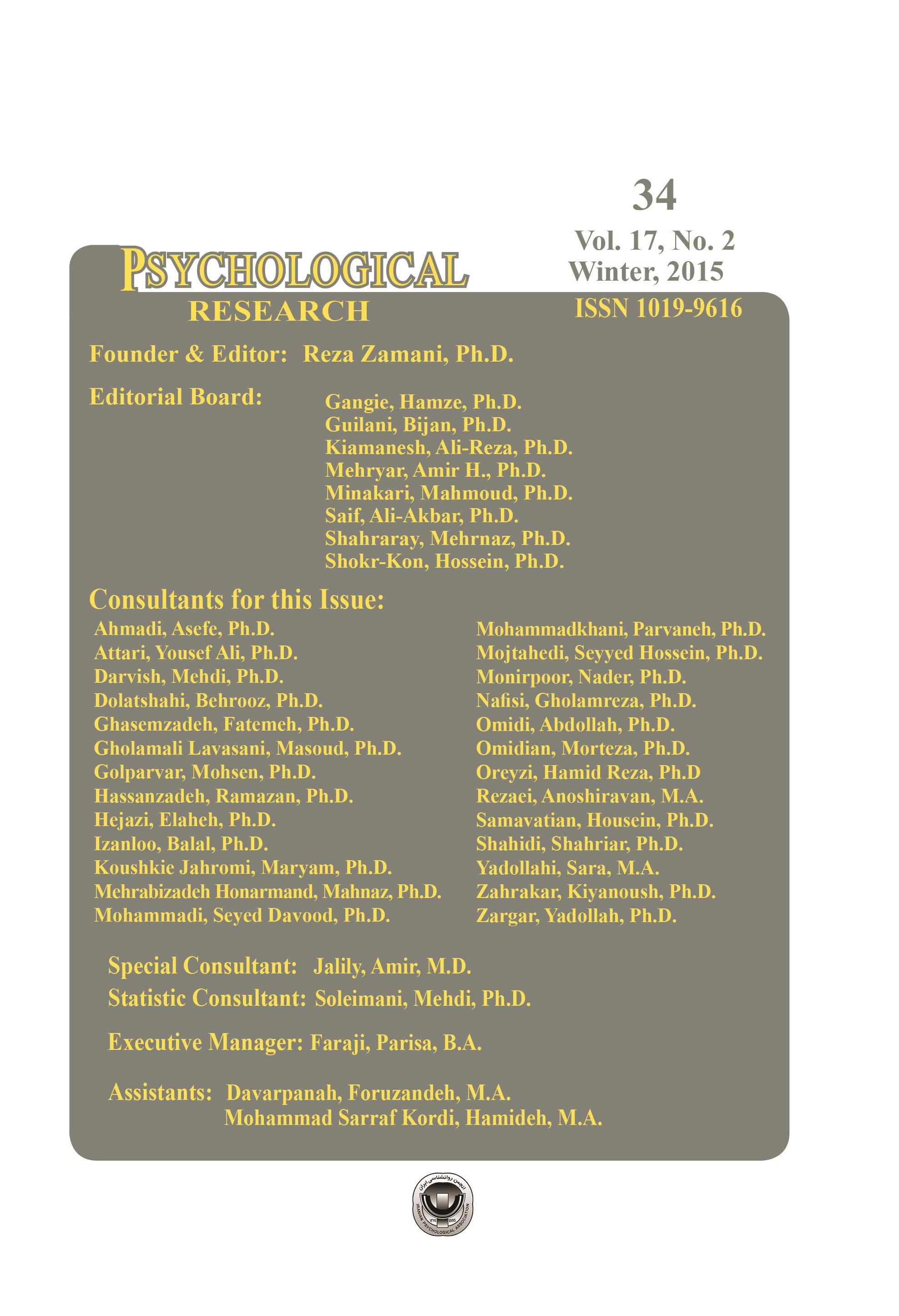 List of Articles Open Access Article Abstract Page Full-Text 1 - Validity and Reliability of the Basic Beliefs Inventory; Persian Version Elaheh Hejazi Open Access Article Abstract Page Full-Text 2 - Psychometric Properties of Rejection Sensitivity Questionnaire in University Students in Iran Samira Khoshkam Open Access Article Abstract Page Full-Text 3 - Effectiveness of Group Behavioral Activation Treatment on Depressive Symptoms and Dysfunctional Attitudes Amir Jalili Open Access Article Abstract Page Full-Text 4 - Relationship between Goal Setting, Organizational Justice, Job Control, Job Self-Efficacy and Self-Regulation with Job Engagement in Employees of an Industrial Organization Elham Saei Open Access Article Abstract Page Full-Text 5 - Effectiveness of Training Psychological Capital with the Intervention Model of Luthans on the Psychological Capital of the Experts Working in an Industrial Organization Nilla Elmy Manesh Open Access Article Abstract Page Full-Text 6 - Relationship between Autonomy-Supportive Behaviors of Coaches with Sport Commitment in Elite Female Handball Players: The Mediating Role of Psychological Needs and Self-Determined Motivation Behesht Ahmady